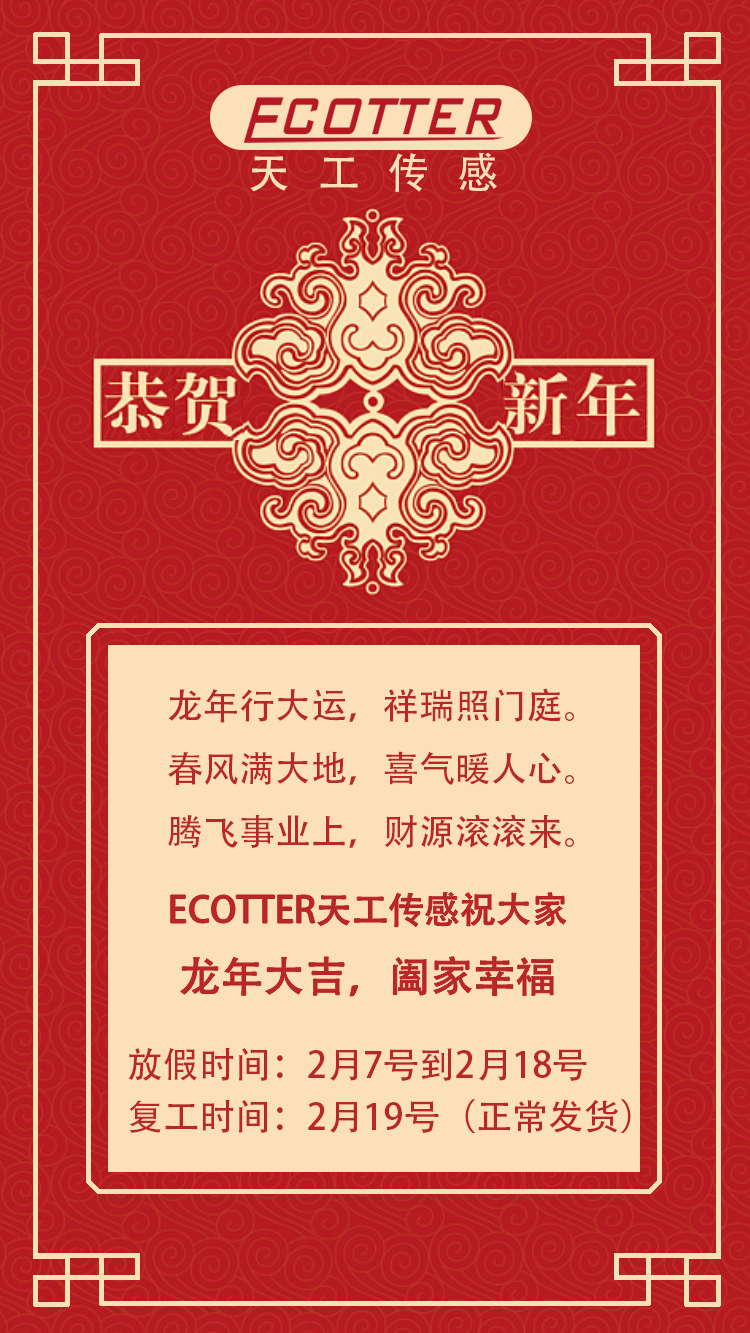 【恭賀新春】ECOTTER春節(jié)放假時間2月7號至18號,預(yù)祝大家新春快樂!