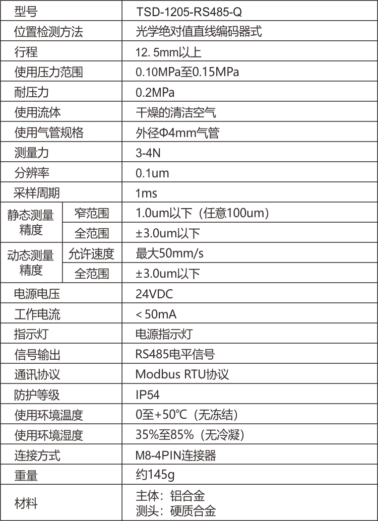 ECOTTER 氣動(dòng)型 接觸位移傳感器 TSD-1205-RS485-Q 具有高速返回?cái)?shù)據(jù)的特點(diǎn),達(dá)每秒1000次的數(shù)據(jù)刷新頻率,可支持動(dòng)態(tài)測(cè)量。常用于測(cè)高、測(cè)厚、測(cè)平整等。