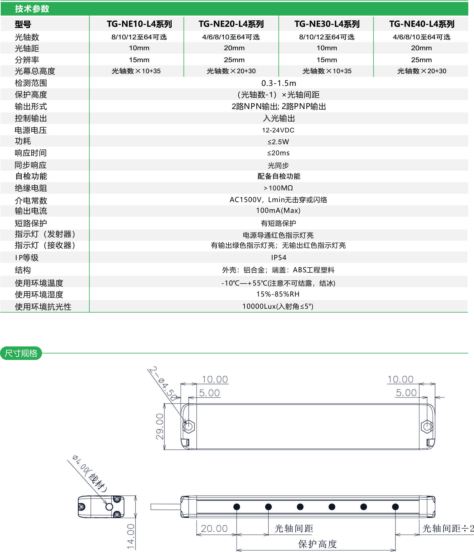 首頁 > 產(chǎn)品中心 >>傳 感 器 >> 安全光幕 >> 四級安全光幕超薄型TG-NE-L4側(cè)面對射