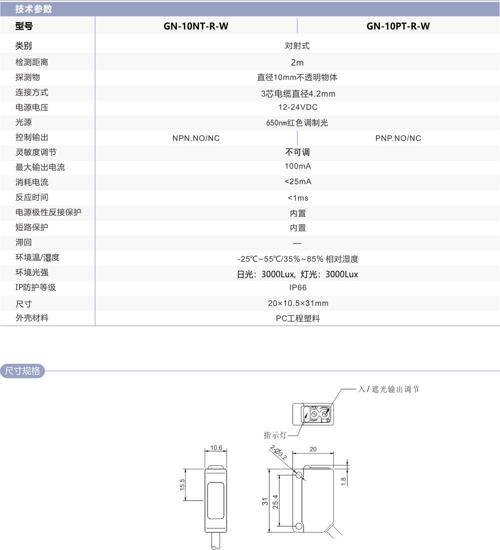 擴(kuò)散光對(duì)射光電開關(guān)GN-10T-R-W