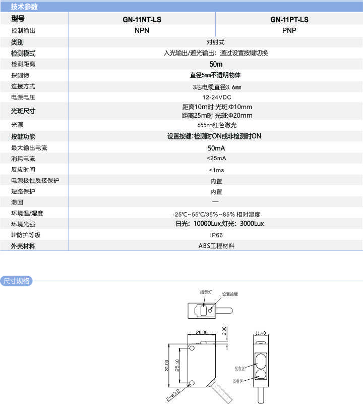 首頁 > 產(chǎn)品中心 >>傳 感 器 >> 光電開關 >> 激光背景抑制對射光電開關GN-11T-LS